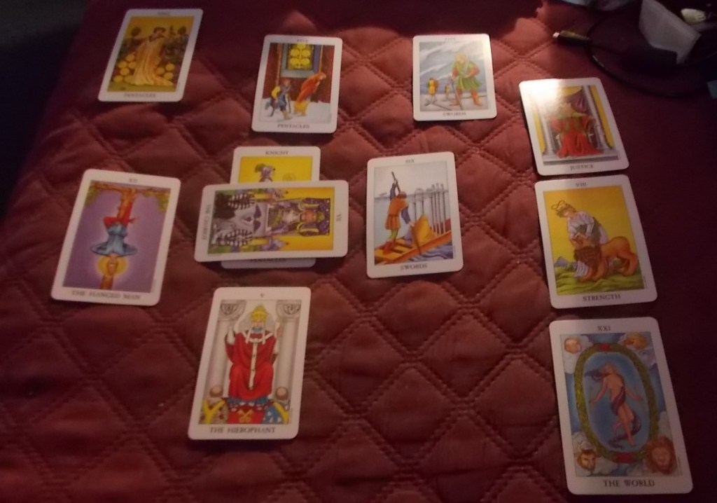 So, that’s how I read those cards. It came quite easily for me when most of the time tarot stymies me. Big Message! A new sense of worth both material as well as mental is charging forward for our government. We were strung up in the past. There exists unequal standing but we are moving to safe ground. The current regime is complete and we have renewed strength of purpose. Justice will prevail and we will stand our ground and put down the armor to find commonality and equality. We can now breath a sigh of relief and begin the work of bringing forth harmony.