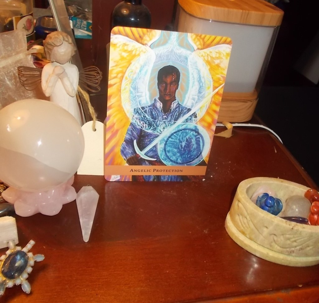 Notes from me; I say a daily bedtime prayer thanking the angels for supporting me, encouraging me, guiding me and unconditionally loving me. I thank them for their continuous presence in my life. This card reminds me and affirms for me that they hear me and they protect me always. I’ve have some key times in my life where I could feel them with me and they protected me from danger. When I am stressing out, I feel them comforting me and my anxiety de-escalates. I feel a warm glow of calmness and I know they have my back always. I am grateful for their presence and know that I am never alone.