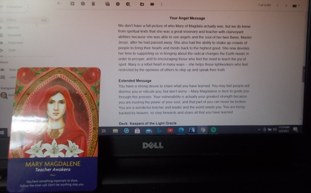 Keepers of the Oracle – 4/5/21 Posted on April 5, 2021 by barbward Share this: Click to share on X (Opens in new window) X Click to share on Facebook (Opens in new window) Facebook More Click to share on Tumblr (Opens in new window) Tumblr Click to share on Bluesky (Opens in new window) Bluesky Like Loading... Related Published by barbward I'm a woman who loves to write to express all that she's feeling and things about which she is passionate. I write when I'm inspired. Love is usually my biggest inspiration. View all posts by barbward
