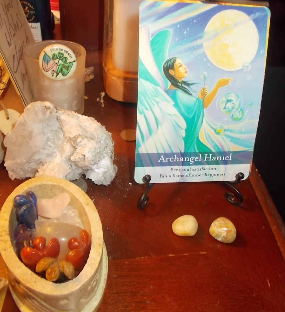 Card- Archangel Haniel – Seek soul satifaction . Fan a flame of inner happiness.