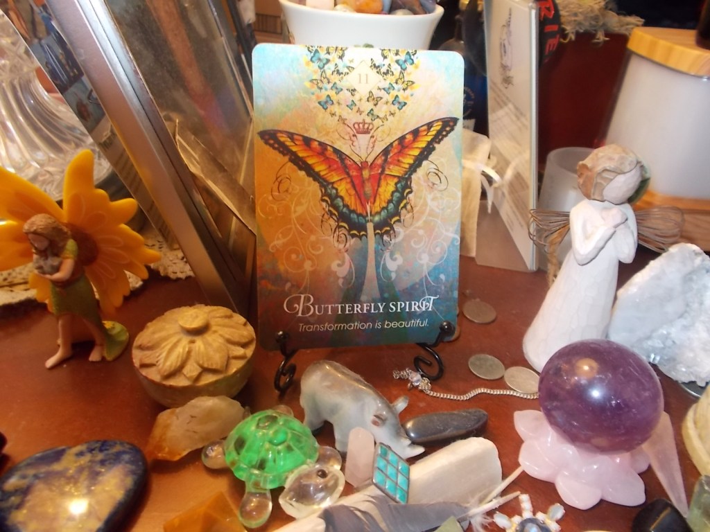 Intuitive Notes from Me: Oh, the joy of seeing the butterfly flutter and alight around you. Everything negative is forgotten when we just simply be around the beautiful. Butterfly brings with it a lightness of spirit. The impossible can be seen as possible. Challenges can be overcome. Life is a series of transformations to reach to the ultimate of your soul evolvement and progression. Isn’t that the essence of what each lifetime is all about?