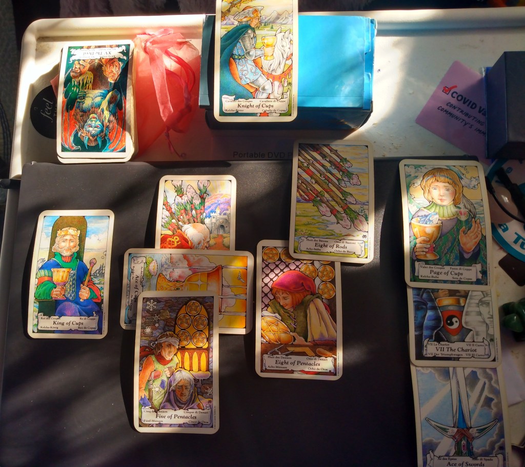 With all the noise going on about Twitter and it’s new owner, I thought I do a read on what will become of Twitter and the future of it. I must admit that I was expecting negative cards- mayhem- in the read but to my surprise these are pretty good cards. I wanted to point out that there was only one Major Arcana cards in the spread The Chariot and the bottom of the deck card was the Devil- trickery, nefarious ways- yet it was reversed. I also want to say that I been given nudges that perhaps someone behind the scenes is working on saving this social media platform. With these cards, it might just be the case. So, let’s take a look at the spread shall we?