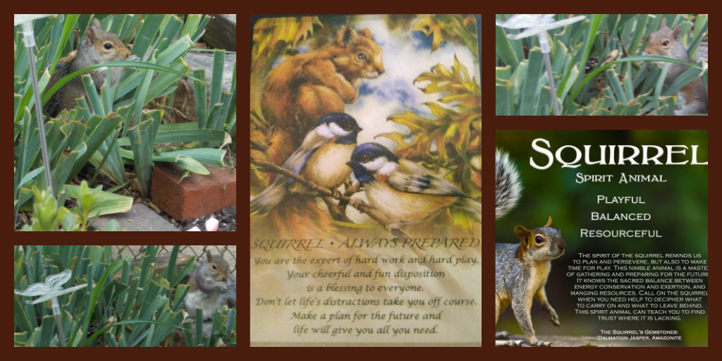 I’ve been nudged to get back to working with Spirit Animals again and do some readings with my oracle cards. I also found a really great new deck that I want to work with. It’s created by Jody Bergsma. So, the animals are calling me once again. Here’s a collage that I made on the Squirrel Spirit message.