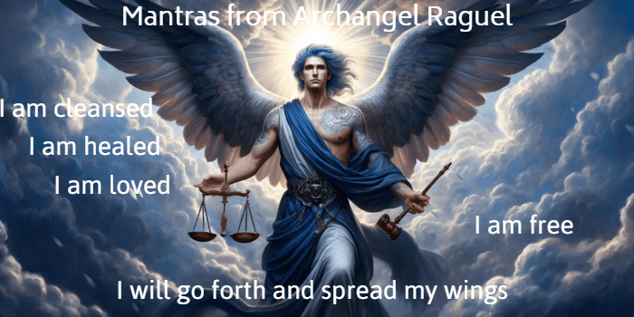 Update: I did a couple of meditations today with Archangel Raguel. One was a music meditation and I called Archangel Raguel forth and said I was open to any messages or guidance from him/ her. I then recieved a vision of angel wings first. Then a vision of Archangel Michael stepping back and standing behind Archangel Raguel. A circle of all Archangels were formed with Archangel Raguel in the center. My spirit was in front of him as he place his hands on my Crown chakra and he began to polish it. He then gave me clairaudiently Mantras for me to repeat and say daily. These were it: