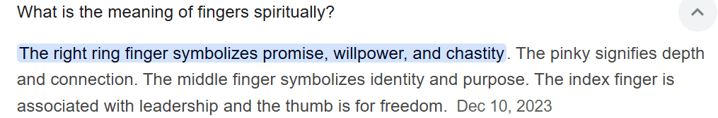 Now, this I found this interesting too. I didn’t know that each finger has a specific spiritual meaning. Now, I do. You learn something new every day and I love that.