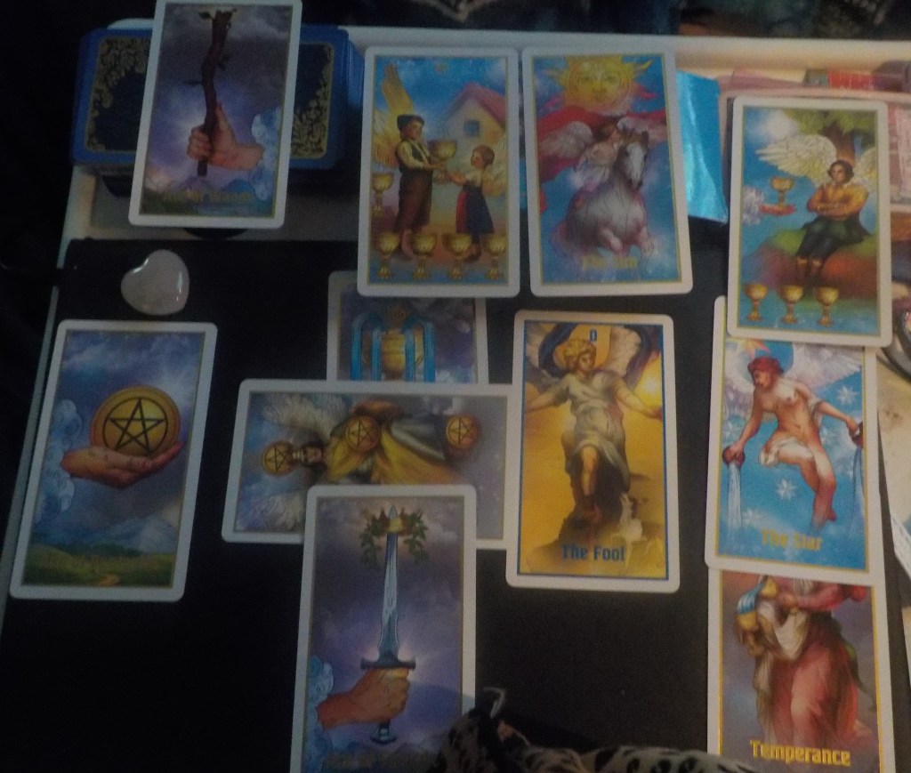 Side note: Look at the picture of the tarot spread. See how the sun pierce through the 2 of Cups and the King of Swords. A definite connection.